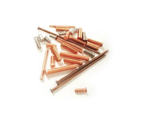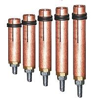Weldtron supply standard projection welding electrodes for M6, M8, M10, M12 nuts. Weldtron projection welding electrodes are provided with a self-insulating pin made out of composite materials having high hardness for locating nuts. These pins have very high resistance to aberrations which in turn gives long life. Also the electrodes will have a Tungsten Copper facing. The Tungsten Copper facing has very high wear resistance, results in longer life of electrode. These electrodes are available off the shelf any time